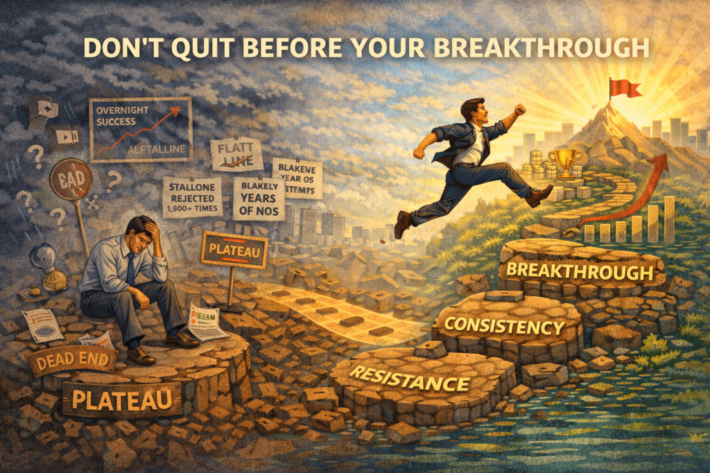 We’ve all been there. You start something with fire in your chest — a new job, a side hustle, a fitness goal — only to hit a wall of doubt, struggle, or boredom. The temptation to quit is strong. And sometimes quitting is necessary. But more often than not, people give up right before the breakthrough.