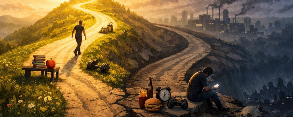 Anyone can say “I’m just lazy” but take a step back and really look at why you’re this way. Most likely, the habits you have every day allow for this laziness. You are programmed by these habits. Small decisions you make that have a huge longterm impact. Breaking these habits is difficult because progress seems insignificant in the moment. Let’s look at an example.